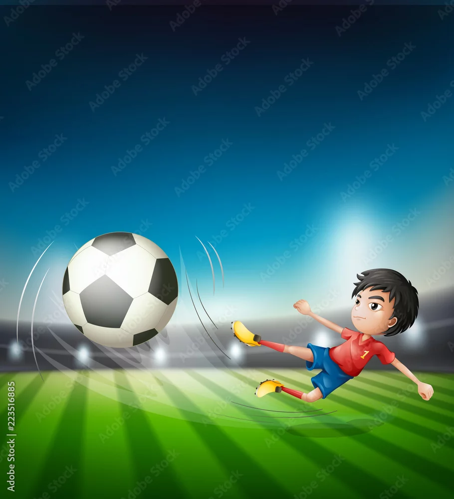 Fototapeta samoprzylepna Piłkarz kopie piłkę