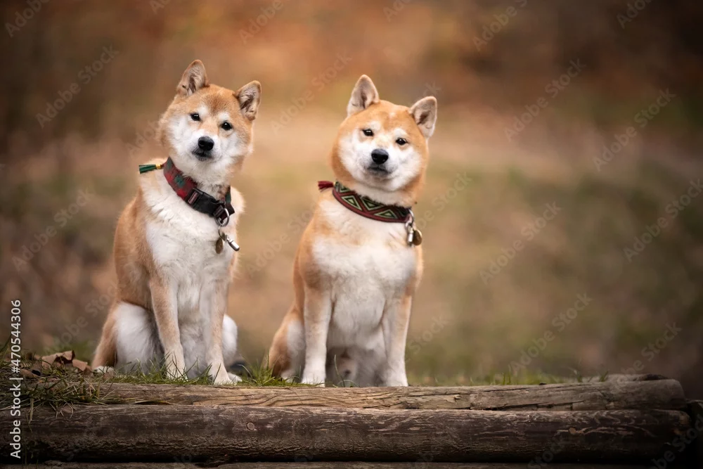 Fototapeta samoprzylepna Dwa psy rasy shiba inu - psy - Picturewall.pl