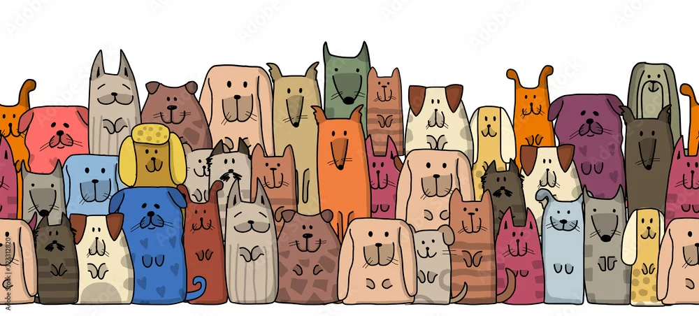 Fototapeta samoprzylepna Funny dogs family, seamless pattern for your design - psy - Picturewall.pl