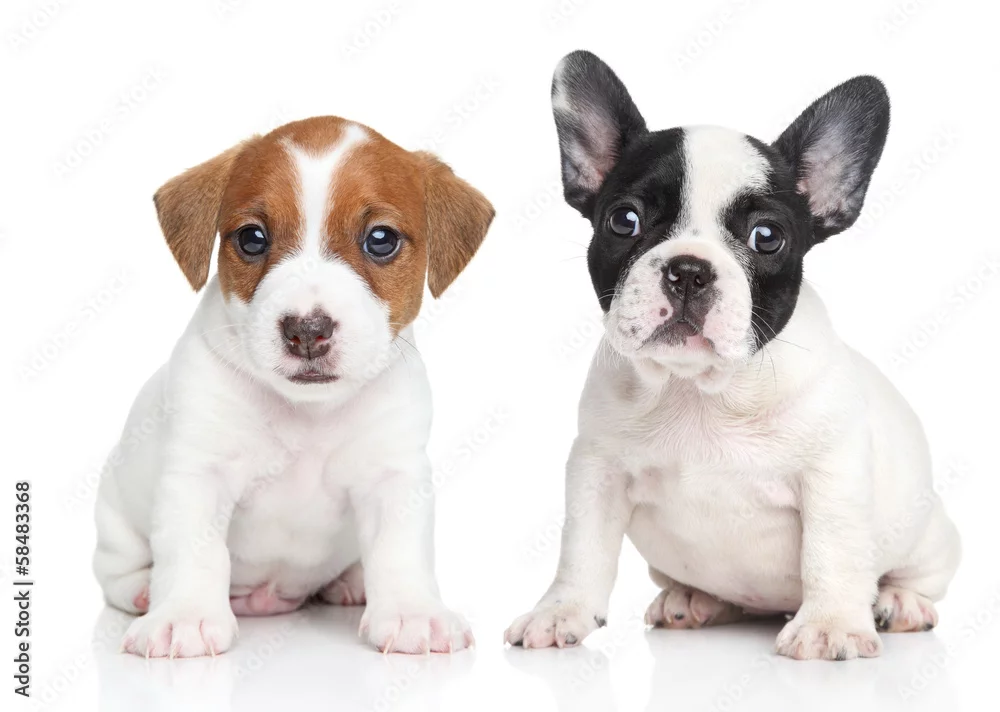 Fototapeta samoprzylepna Jack Russell terrier and french bulldog puppies