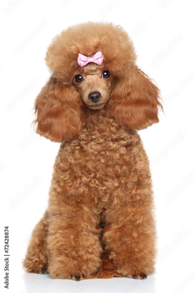 Fototapeta samoprzylepna Toy poodle with pink bow