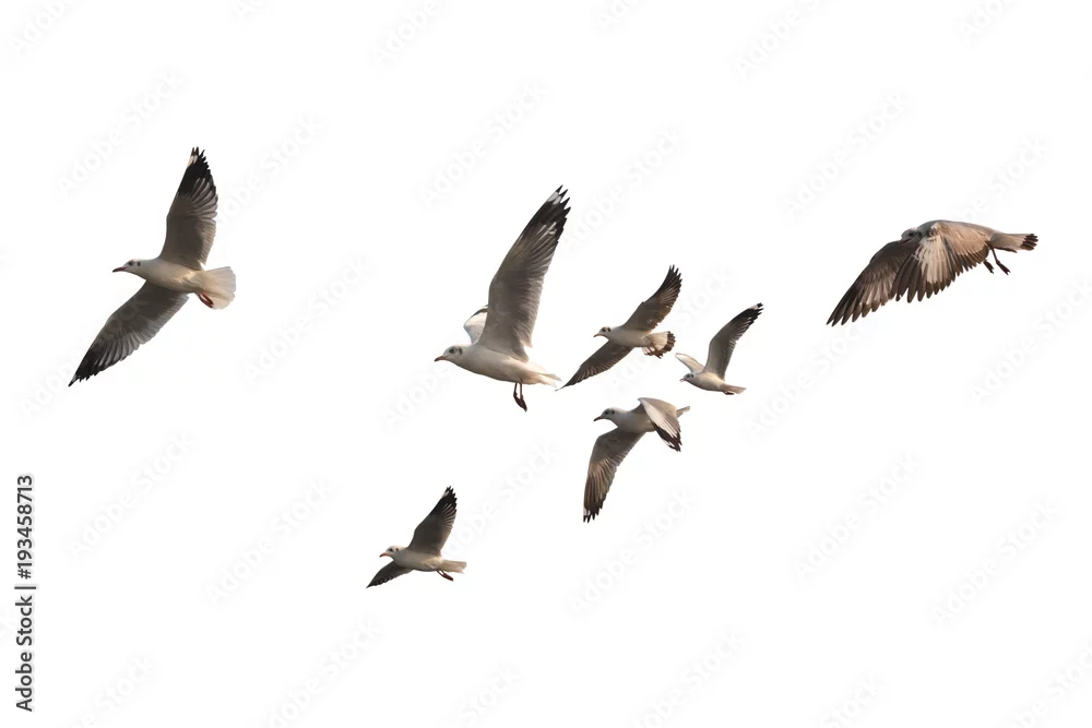 Fototapeta samoprzylepna Flock of birds flying isolated on white background. This has clipping path.