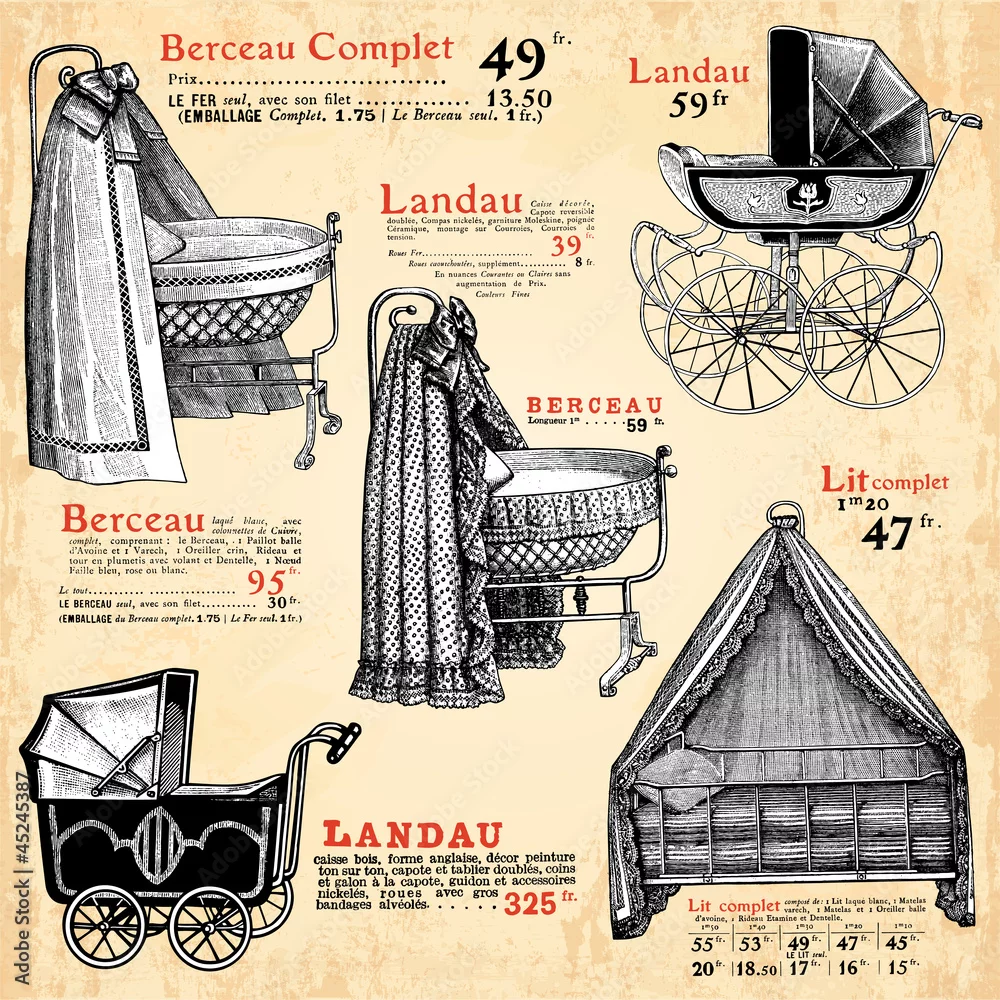 Fototapeta samoprzylepna Landaus i kołyski - retro - Picturewall.pl