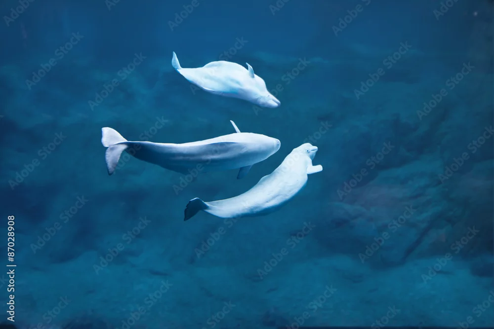 Fototapeta samoprzylepna Beluga whales diving in deep water