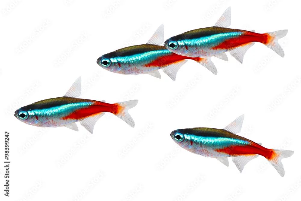 Fototapeta samoprzylepna Swarm of Neon Tetra Paracheirodon innesi freshwater fish isolated