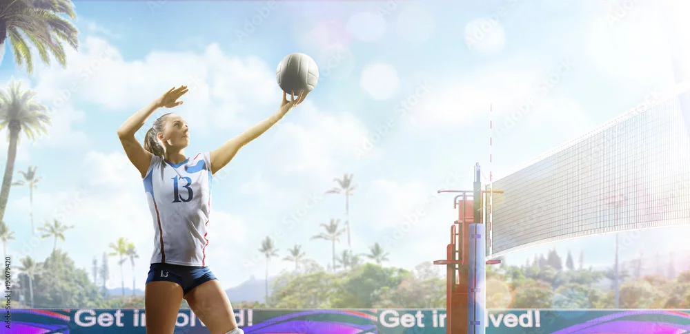 Fototapeta samoprzylepna Zawodowa siatkarka w akcji na boisku
