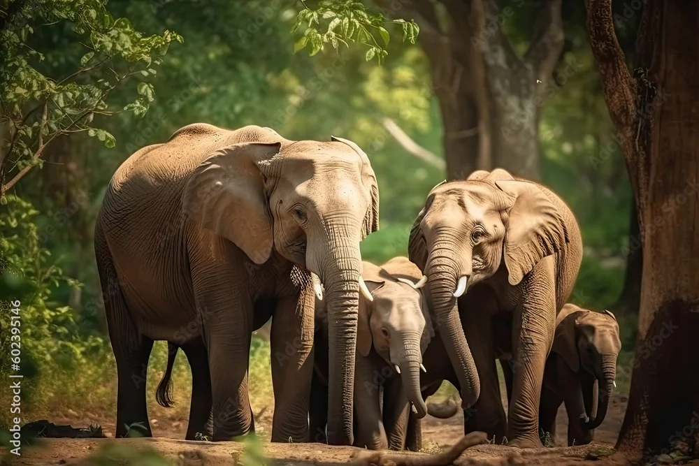 Fototapeta samoprzylepna Asia Elephants family walking in the natural park, Animal wildlife habitat in the nature forest, beautiful of life, massive body part, largest mammal, with Generative AI.