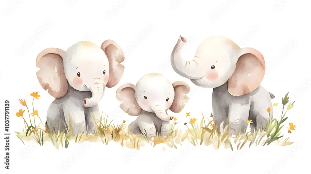 Fototapeta samoprzylepna Cute Watercolor Elephant Family Illustration Nursery Decor Kids Art Print Animal Illus
