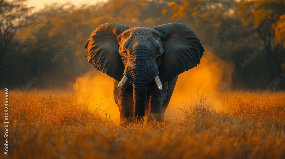 Fototapeta samoprzylepna Gran elefante, africano corriendo hacia Fotografo. Concepto de fotografía salvaje y concursos fotográficos de África.
