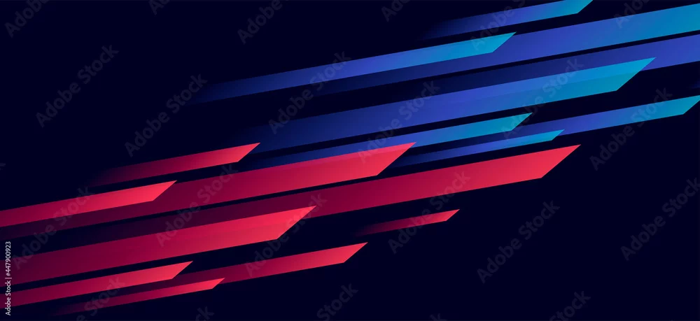 Fototapeta samoprzylepna Speed dynamic background with rectangular shapes in motion forming texture, sport background, red and blu lined in dark space