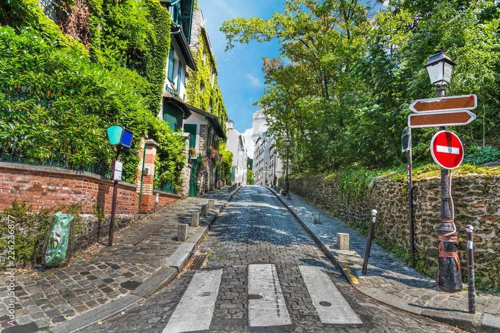 Fototapeta samoprzylepna Piękna brukowana ulica w dzielnicy Montmartre