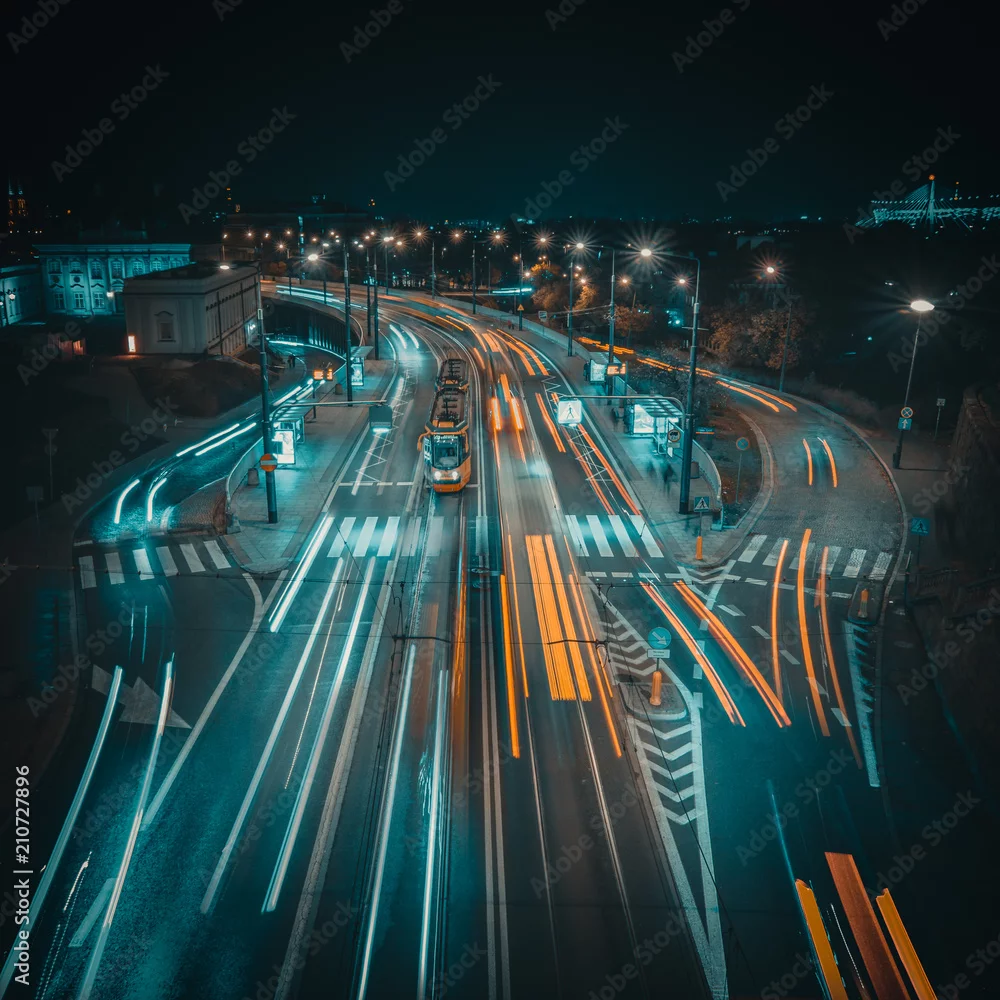 Fototapeta samoprzylepna Ulice Warszawy, Polska nocą