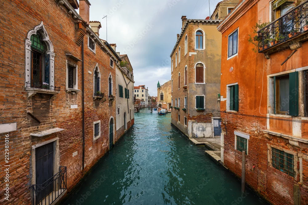 Fototapeta samoprzylepna Widok uliczny kanał w Wenecja, Włochy. Kolorowe fasady starych domów w Wenecji. Wenecja jest popularnym miejscem turystycznym w Europie. Wenecja, Włochy.