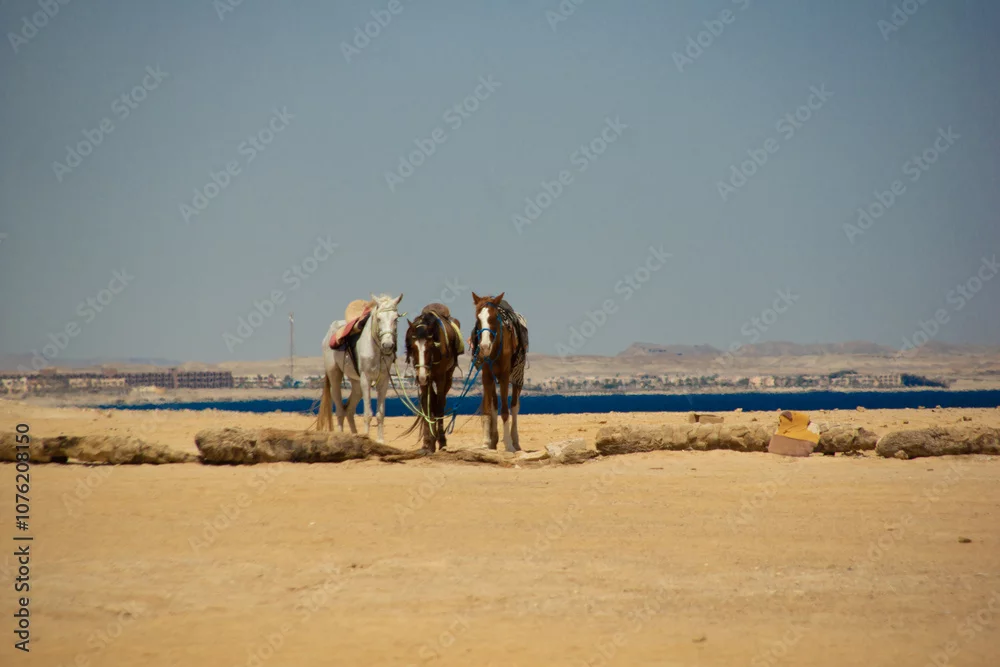 Fototapeta samoprzylepna Konie na pustyni w Marsa Alam. Egipt.