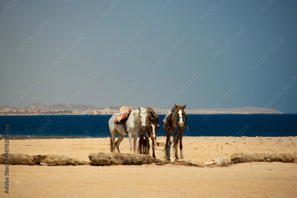 Fototapeta samoprzylepna Konie na pustyni w Marsa Alam. Egipt.