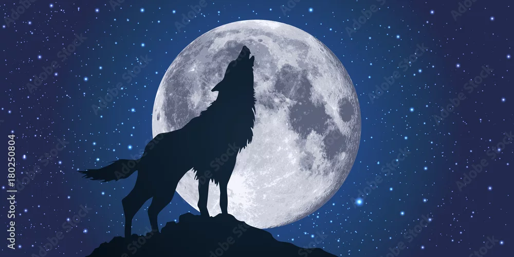 Fototapeta samoprzylepna wilk - księżyc - światło księżyca - wycie - noc - symbol - strach - dziki - niebezpieczny