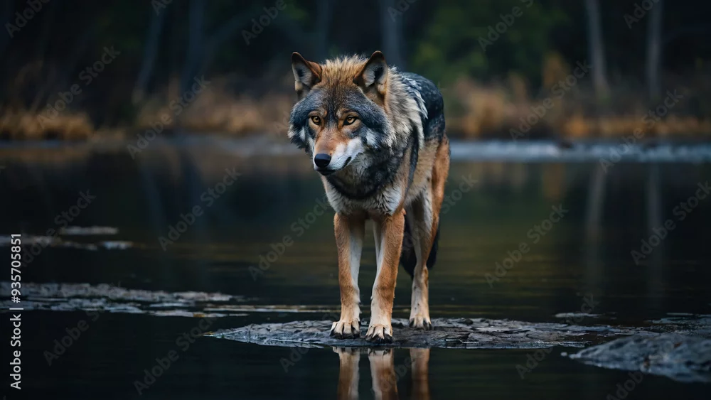 Fototapeta samoprzylepna Wilk w naturalnym środowisku. Generative AI.