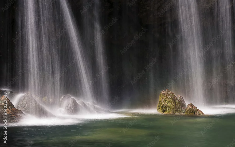 Fototapeta samoprzylepna Szczegółowo wodospadu młyna San Pedro. Vallecillo Teruel Hiszpania - wodospady - Picturewall.pl
