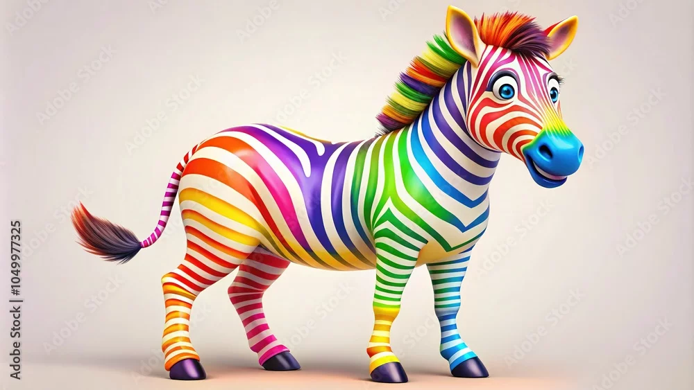A whimsical zebra character designed for children's books and educational materials, showcasing vibrant colors and bold stripes to captivate young imaginations and enhance learning experiences.