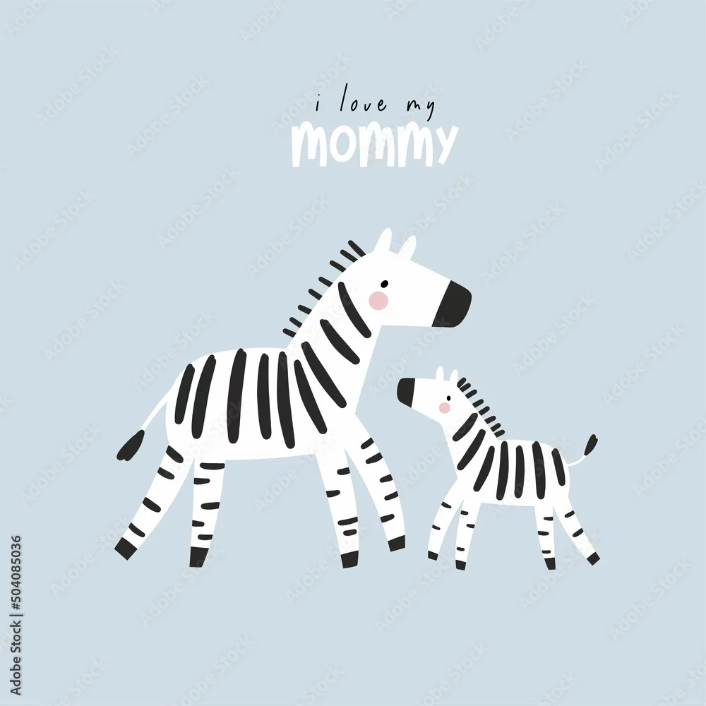 Fototapeta samoprzylepna Cute cartoon Bohemian nursery print. Vector print for wall decor in children's bedroom. Cute characters - zebra mom and baby