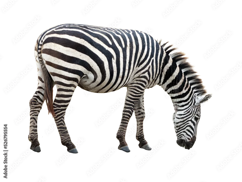 Fototapeta samoprzylepna Cutout of an isolated zebra grazing grass with the transparent png background