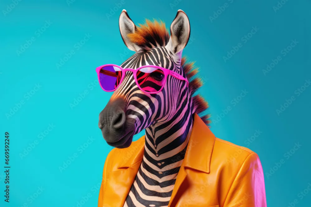 Fototapeta samoprzylepna trendy modern zebra animal in stylish outfit with sunglasses