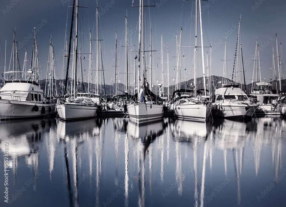 Fototapeta samoprzylepna Wieczorem przystań łodzi żaglowej