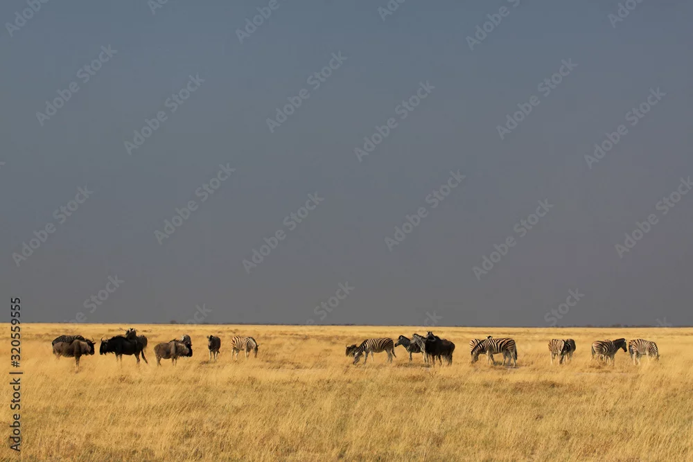 Fototapeta samoprzylepna afrykańskie zwierzęta pasące się na wyschniętych trawach sawanny