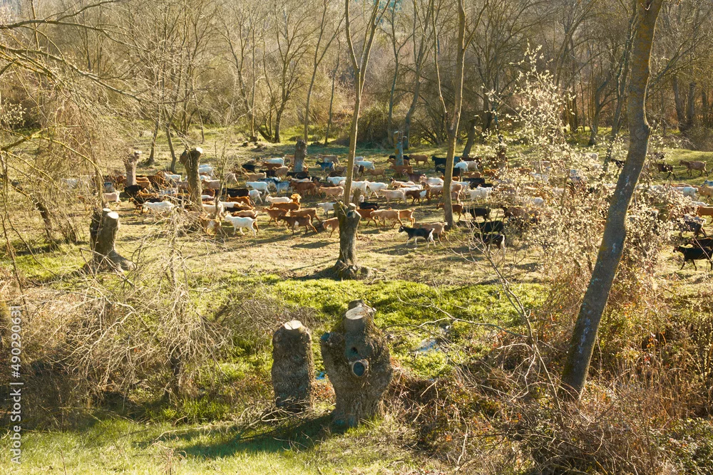 Fototapeta samoprzylepna kozy zwierzęta las drzewa natura - zwierzęta - Picturewall.pl