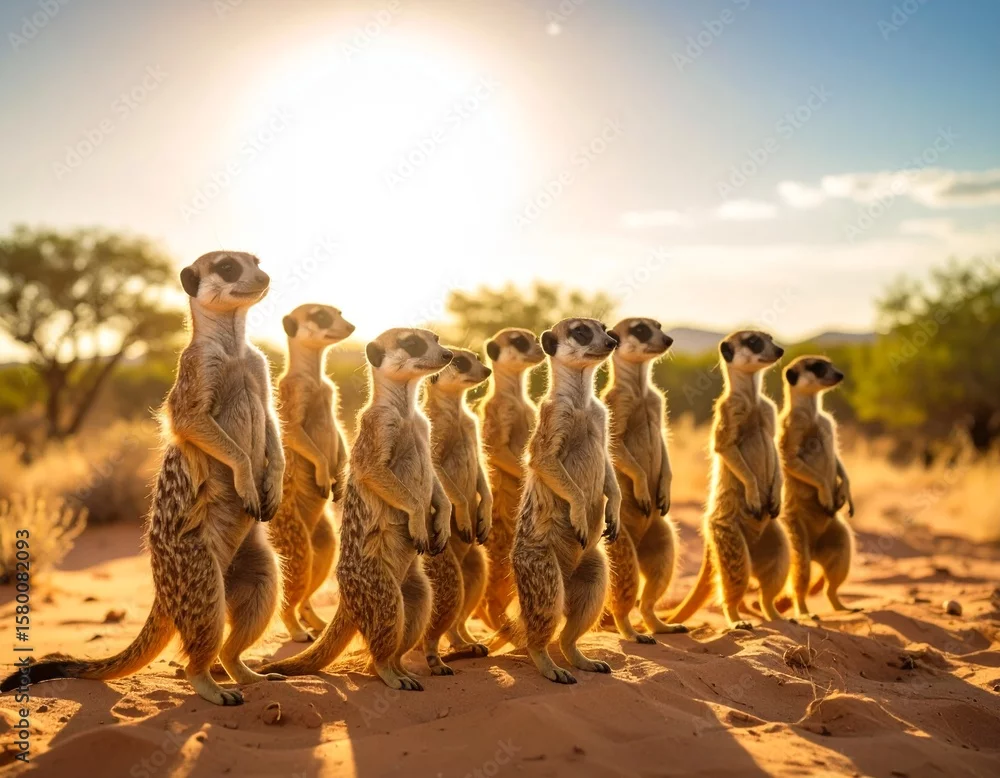 Fototapeta samoprzylepna Złota surykatka – czujność na tle pustyni - zwierzęta - Picturewall.pl