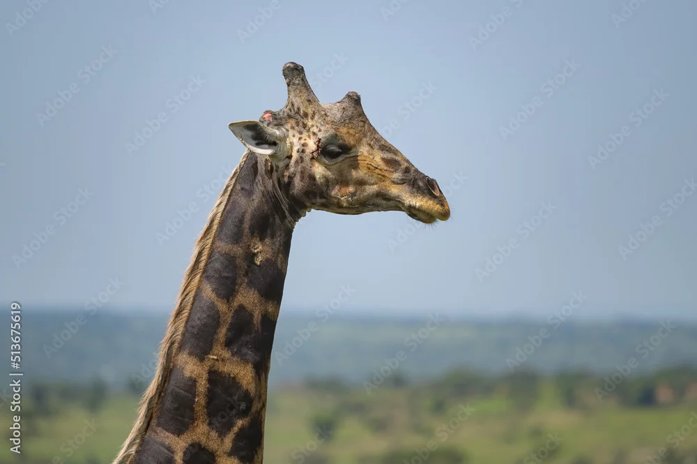 Fototapeta samoprzylepna A giraffe in Murchison Falls National Park - żyrafy - Picturewall.pl