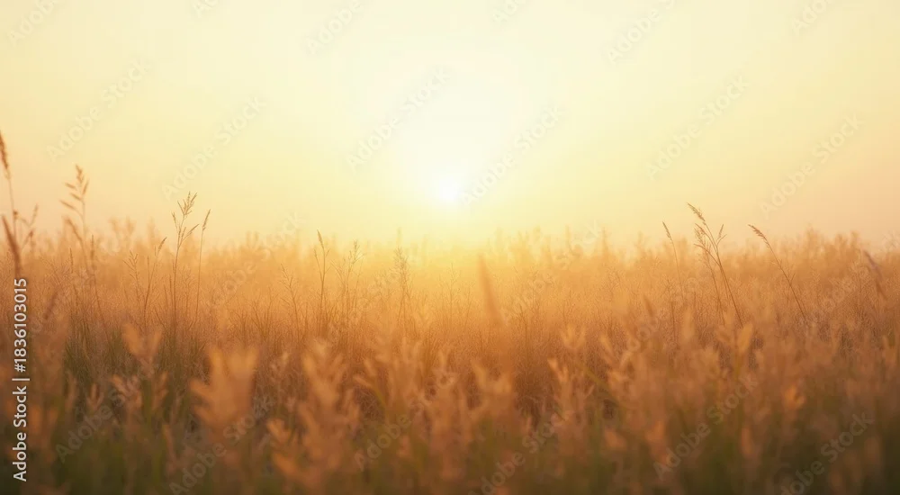 Fototapeta samoprzylepna Field of tall grass with the sun setting