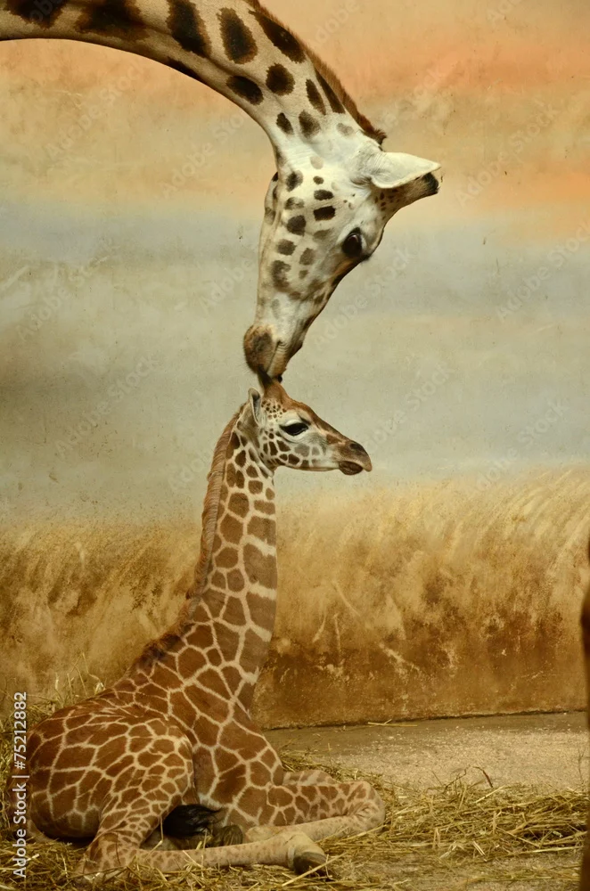 Fototapeta samoprzylepna Mother-giraffe and baby-giraffe