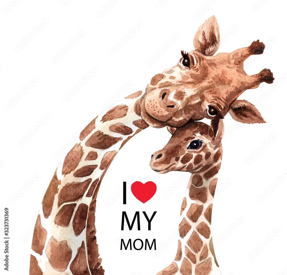 Watercolor giraffe, Watercolor mom giraffe and baby drawing for Baby shower, POD, Mother's day clipping path isolated on white background.