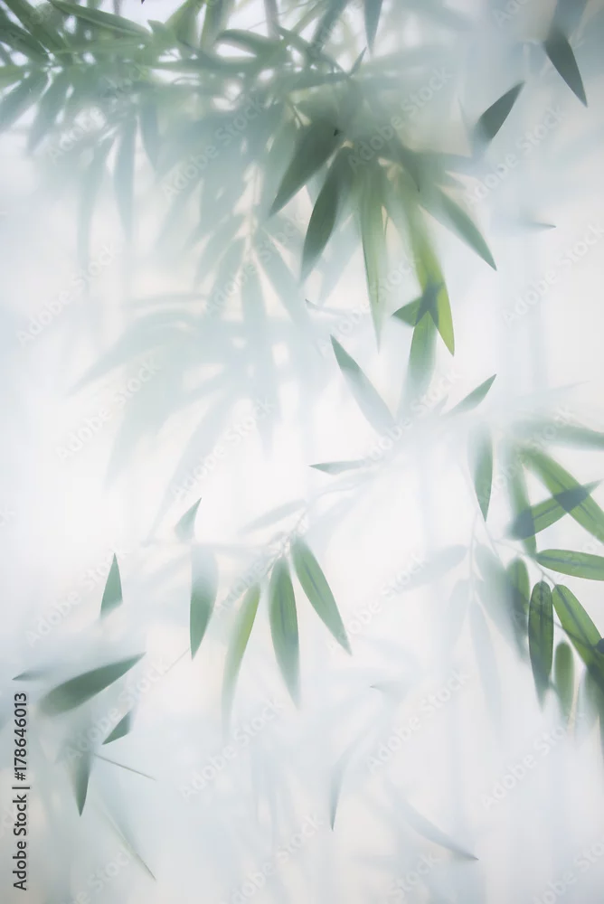 Fototapeta Zielony bambus we mgle z łodygami i liśćmi za matowym szkłem