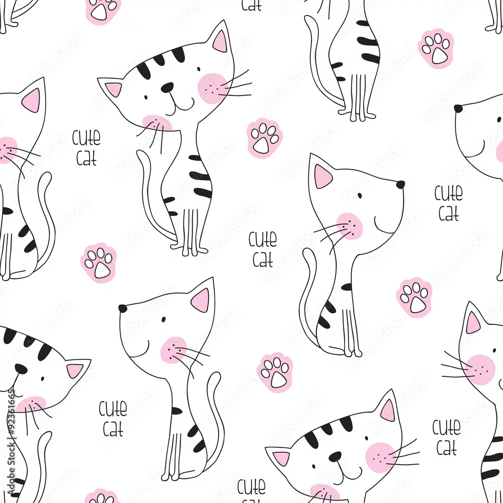 Fototapeta bezszwowa śliczna kota wzoru wektoru ilustracja - Picturewall.pl