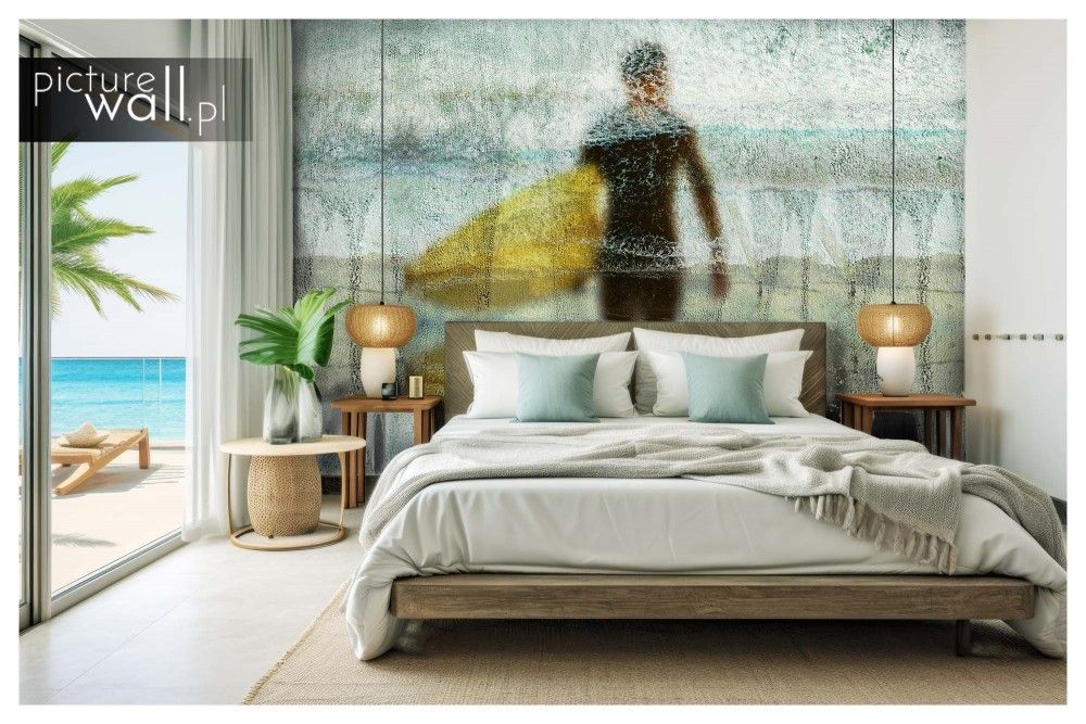 Fototapeta Serfer to dynamiczny motyw idealny do wnętrz związanych z aktywnością fizyczną, sportem czy młodzieżowym stylem życia czy pokoju hotelowego. Obraz przedstawiający surfera na fali wprowadza atmosferę przygody i energii, nadając przestrzeni charakteru i dynamizmu.