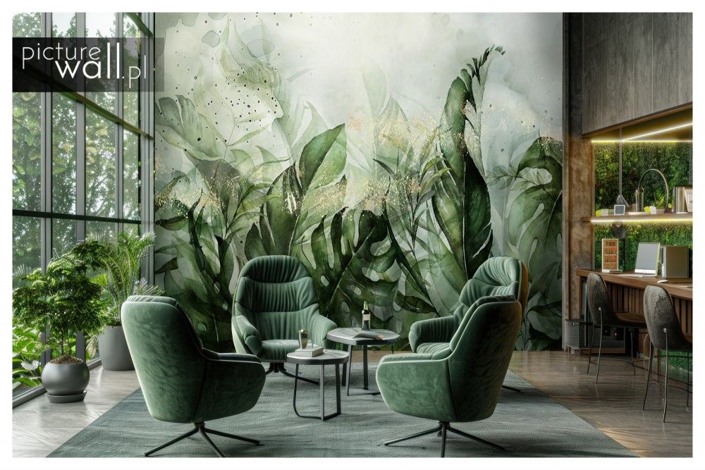 Fototapeta Złocista bryza nad liśćmi to stylowa dekoracja, która wprowadza do wnętrza atmosferę spokoju i wyrafinowania. Motyw przedstawiający delikatne liście w złocistych odcieniach na tle subtelnej faktury nadaje pomieszczeniu elegancki i harmonijny charakter.