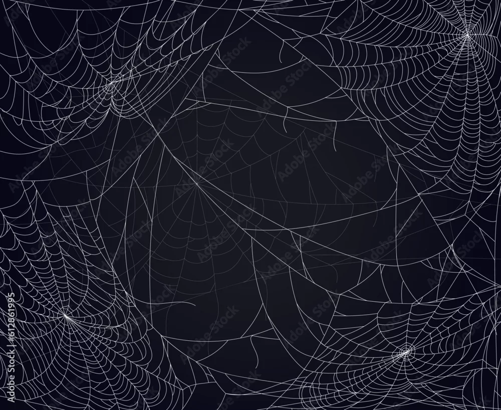 Fototapeta Cobweb spooky background. Halloween scary, horror decoration, sticky Halloween spider web design. Flat vector backdrop illustration - Picturewall.pl