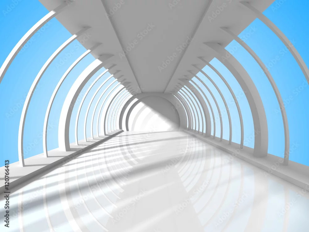 Fototapeta abstrakcyjna architektura, futurystyczny budynek z niebem w tle