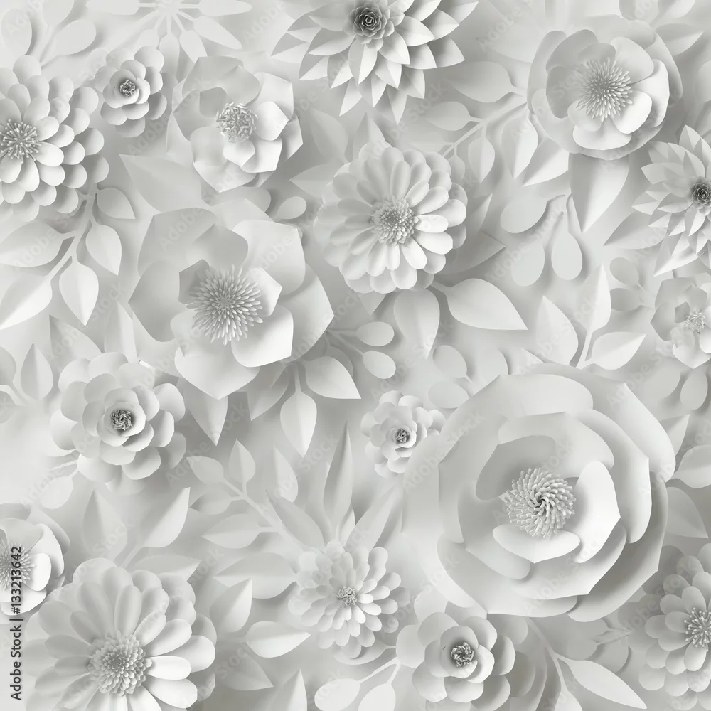 Fototapeta papierowe kwiaty, ślubne kwiatowe tło, cyfrowa ilustracja 3d