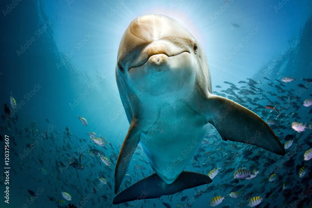 Fototapeta delfin pod wodą na rafie blisko ciebie