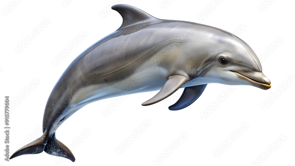 Fototapeta Realistic dolphin swimming gracefully, marine life, transparent background