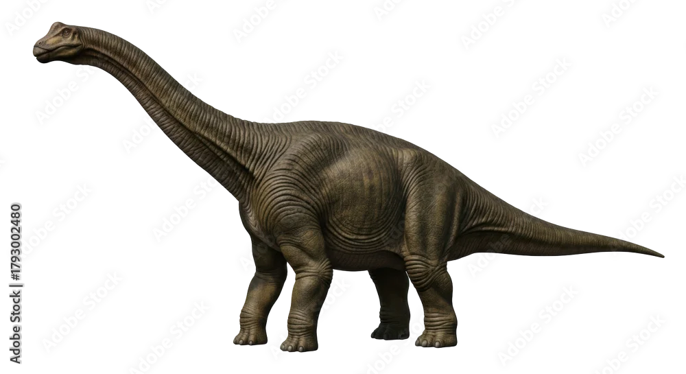 Fototapeta Isolated Brachiosaurus dinosaur walking on earth, extinct reptile with long neck, herbivore - dinozaury - Picturewall.pl