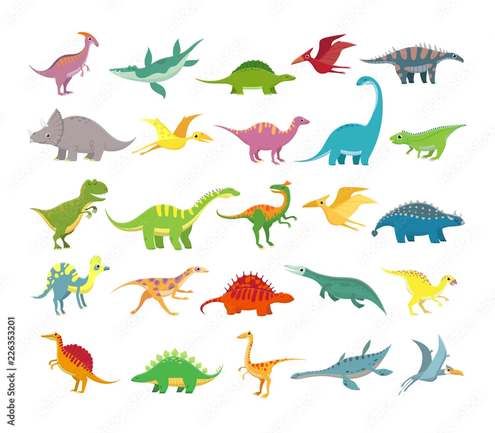 Fototapeta Cartoon dinozaury. Prehistoryczne zwierzęta dino dla dzieci. Kolekcja wektor ładny dinozaura