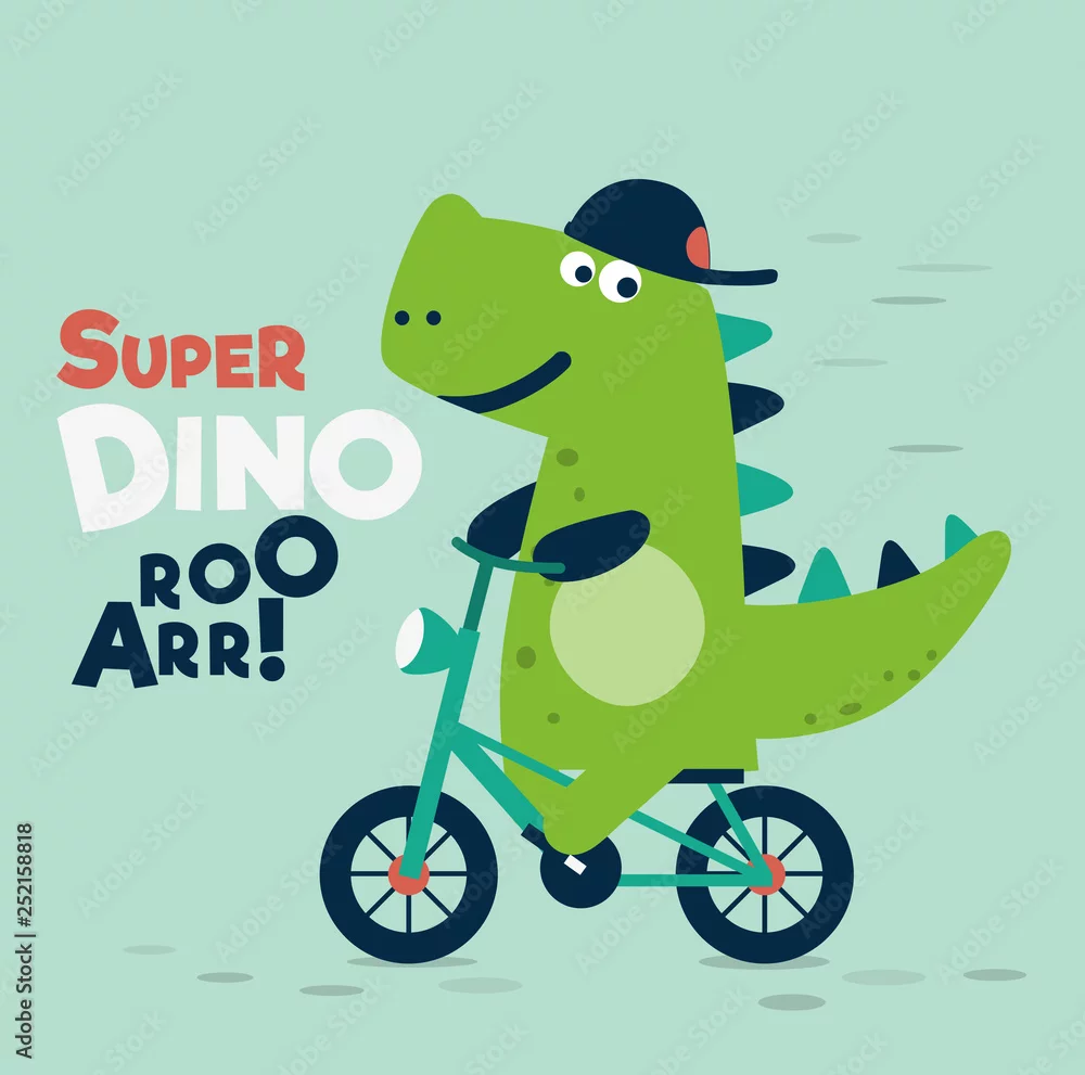 Fototapeta Cute dinosaur rides on bicycle - dinozaury - Picturewall.pl