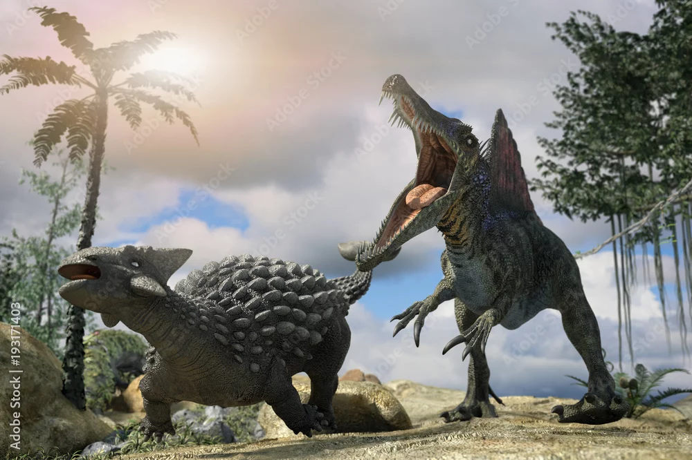 Fototapeta 3D Ilustracja bitwy między dwoma prehistorycznymi dinozaurami