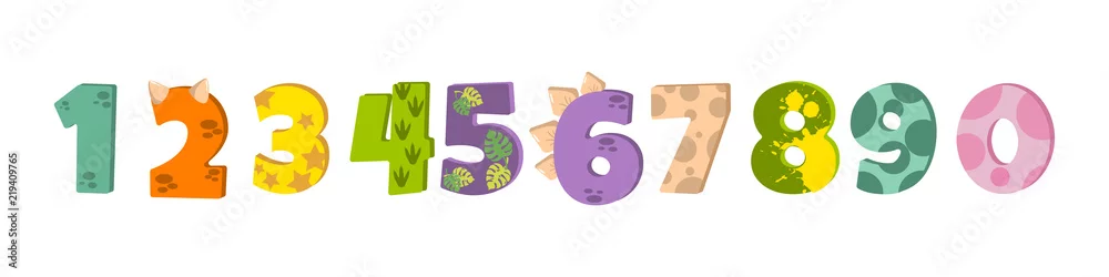 Fototapeta Figurki dinozaurów do projektowania zaproszenia urodzinowego lub dino party, karty okolicznościowej, naklejki, baneru, logo, ikony, plakatu.