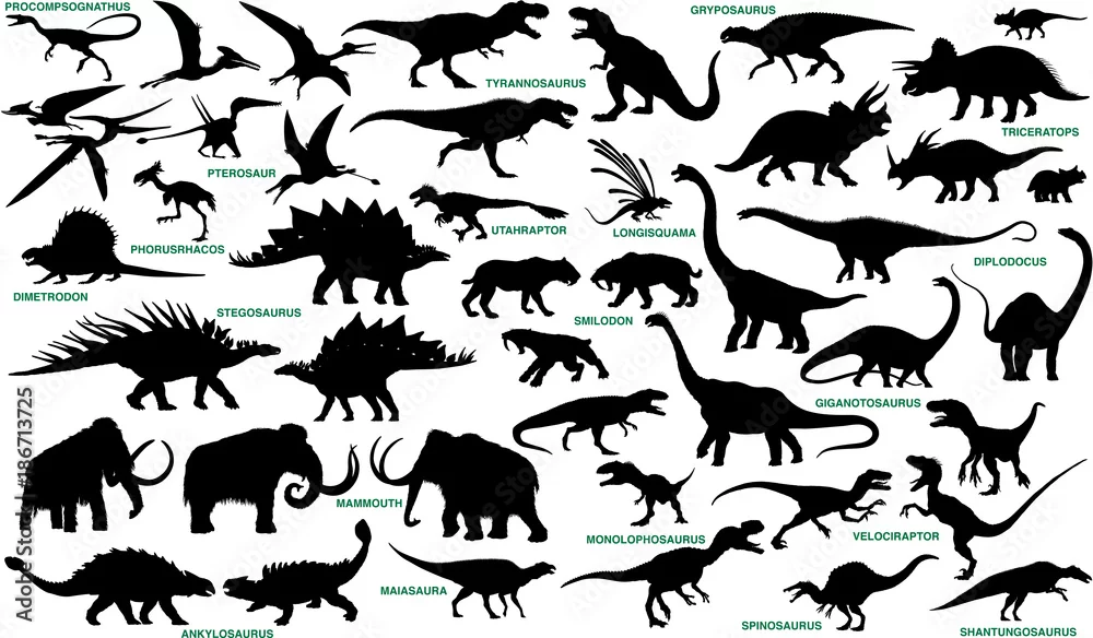 Fototapeta prehistoryczne zwierzęta wektor zbiory sylwetki
