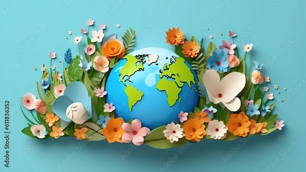 Fototapeta Wild animals and Natural botanical paper art style with copy space. Generative Ai - dla dzieci - Picturewall.pl